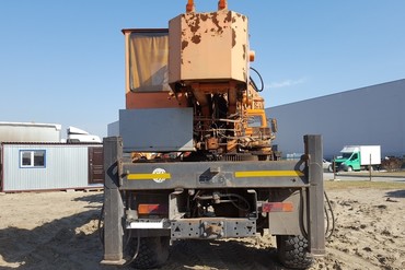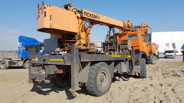 Установка ПСКБМ-1 (Подъемная Специальная Крановая Бурильная Машина) предназначена для подъема людей с инструментом для проведения монтажных и электромонтажных работ. Подъемник оснащен крановой установкой (г/п. 5 тонн, наибольший вылет стрелы – 10,4; 13,5м, наибольшая высота подъема крюка -12; 15м), бурильным оборудованием, предназначенным для бурения скважин глубиной до 4м, диаметром – 0,45-0,65м.