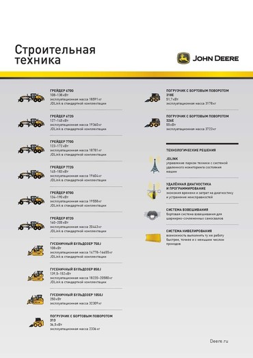 Официальные продажи спец. техники торговой марки John Deere строительного и лесозаготовительного направления и оборудования к ней. Гарантия, сервис, склад запасных частей и комплектующих, расходный материал.